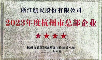 航民股份榮獲2023年度杭州市四星級總部企業